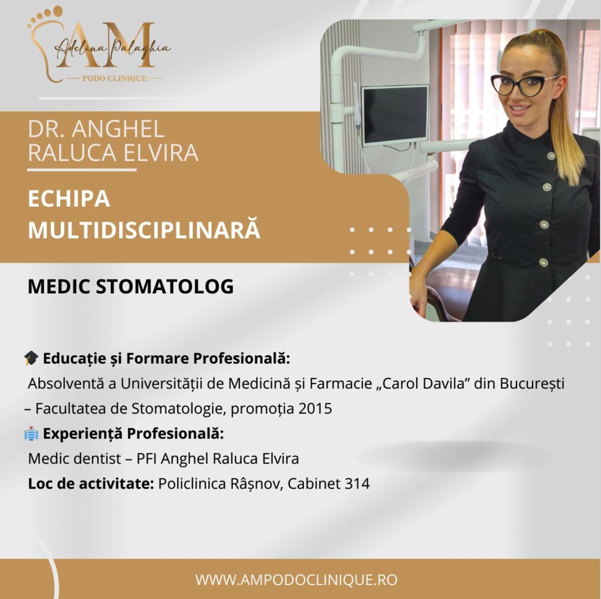 La AMPodo Clinique, combinăm podologia cu dermatologie, ocluzie dentară, chirurgie și fizioterapie pentru tratamente sigure, personalizate și rezultate pe termen lung.